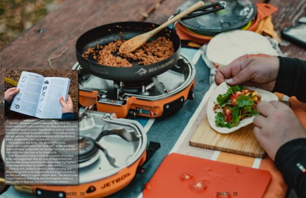Starting with guides to utensils , water carrying and filtration , as well as the ingredients you might need in an on the road pantry is a great introduction . The Motorcycle Camp Cookbook then leads into food hygiene , safety as well as that of disposal and caution around animals …