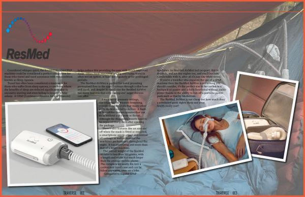The ResMed AirMini is perfect for travel providing pressurised flow to the upper airways through a slim hose and mask , and despite its small size the ResMed AirMini has many features that only the top end larger devices can offer .