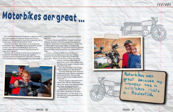 Meeting with the Herbert family was an introduction to just how motorbikes do bring people together . Victoria ’ s maternal grandparents migrated to Australia from Zimbabwe just a few years ago to join their newly