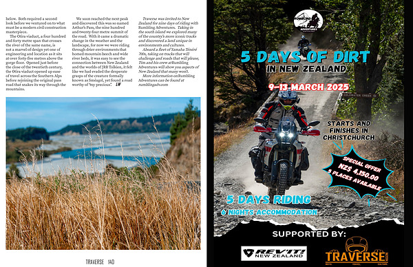 Traverse was invited to New Zealand for nine days of riding with Rumbling Adventures . Taking in the south island we explored many of the country ' s more iconic tracks and discovered a land unique in environments and cultures .