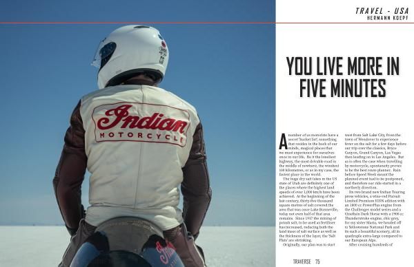 Originally , our plan was to start west from Salt Lake City , from the town of Wendover to experience fever on the salt for a few days before our trip over the classics , Bryce Canyon , Grand Canyon , Las Vegas then leading on to Las Angeles . But as is often the case when travelling by motorcycle , spontaneity proves to be the best route planner . Rain before Speed Week meant the planned event had to be postponed , and therefore our ride started in a northerly direction .