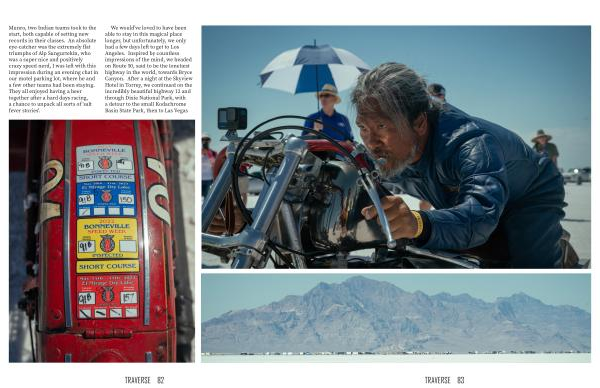 Munro , two Indian teams took to the start , both capable of setting new records in their classes . An absolute eye-catcher was the extremely flat triumphs of Alp Sungurtekin , who was a super nice and positively crazy speed nerd , I was left with this impression during an evening chat in our motel parking lot , where he and a few other teams had been staying . They all enjoyed having a beer together after a hard days racing , a chance to unpack all sorts of ' salt fever stories '.