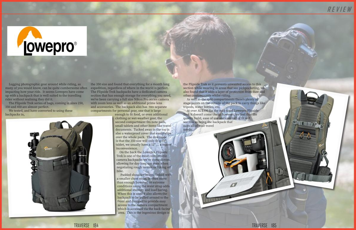 Lugging photographic gear around while riding , as many of you would know , can be quite cumbersome often impacting how your ride . It seems Lowepro have come up with a backpack that is well suited to the travelling rider without realising they did it .