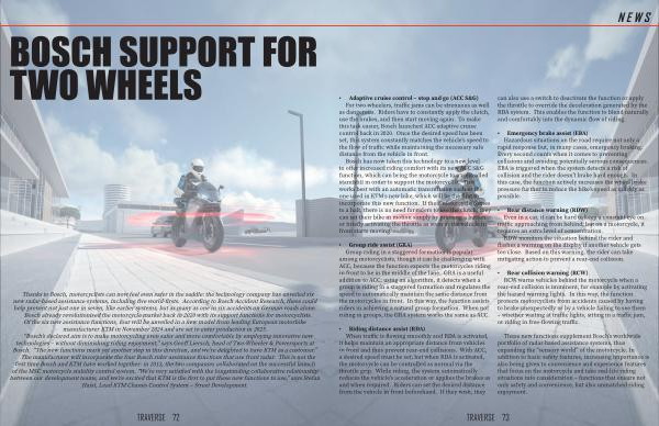 Thanks to Bosch , motorcyclists can now feel even safer in the saddle : the technology company has unveiled six new radar-based assistance systems , including five world-firsts . According to Bosch Accident Research , these could help prevent not just one in seven , like earlier systems , but as many as one in six accidents on German roads alone . Bosch already revolutionised the motorcycle market back in 2020 with its support functions for motorcyclists . Of the six new assistance functions , four will be unveiled in a new model from leading European motorbike manufacturer KTM in November 2024 and are set to enter production in 2025 .