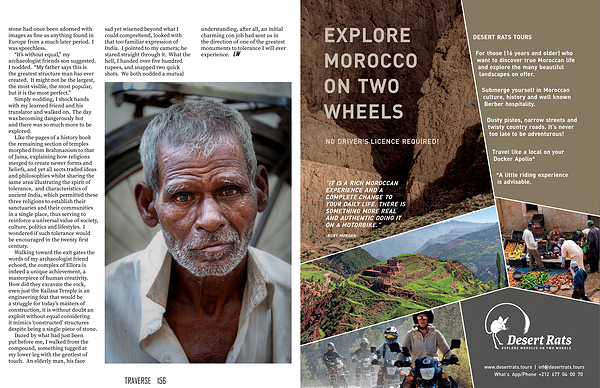 “ IT IS A RICH MOROCCAN EXPERIENCE AND A COMPLETE CHANGE TO YOUR DAILY LIFE . THERE IS SOMETHING MORE REAL AND AUTHENTIC DOING IT ON A MOTORBIKE .”