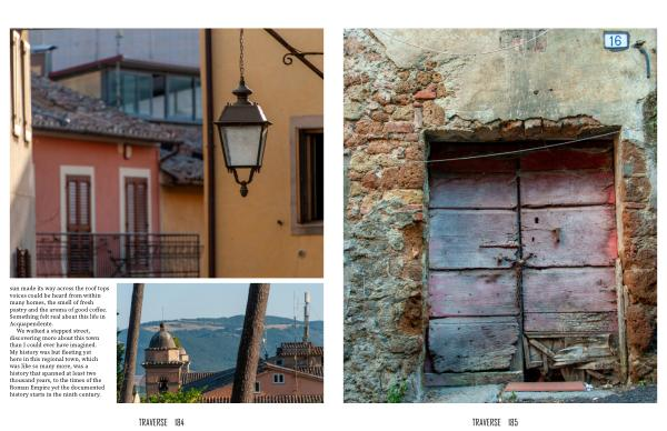 sun made its way across the roof tops voices could be heard from within many homes , the smell of fresh pastry and the aroma of good coffee . Something felt real about this life in Acquapendente .