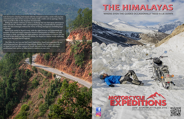 The bikes for our two and half week Exploration Nepal were provided by our advertising partner , Motorcycle Expeditions . Buddhi and his team run tours in Nepal as well as other regions of South Asia and further afield , offering a professional tour option or bike rental to explore on your own .