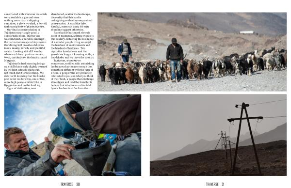 Tajikistan ’ s final morning brings us a chill that is only slightly warmed by the high-altitude plains sun , not much but it is welcoming . We ride north knowing that the border post is not too far away , one or two more high passes and we ’ ll be in Kyrgyzstan and on the final leg . Signs of civilisation , now abandoned , scatter the landscape , the reality that this land is unforgiving evident in every ruined construction . A vast blue lake , Karakul , seems an oasis , it ’ s salty shoreline suggest otherwise .