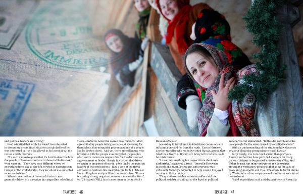 When conversation of the war did arise it was generally driven in a direction that regardless of political views , conflict is never the correct way forward . Most agreed that by people taking a chance , discovering for themselves , that misguided preconceptions of a people can be broken down . And yet , there are still many who lay blame with the people assuming that the peoples of an entire nation are responsible for the decisions of a government or leader . Russia is a nation that drives rejection to the point of hatred , often led by the political leaders of Western nations . Take a look at the travel advisories of nations like Australia , the United States or United Kingdom and you ’ ll find comments like , “ Russia is making strong , negative comments toward the West ”, or “ US citizens WILL face harassment or detention by