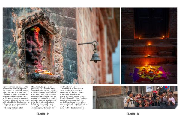 objects . We were exploring on what is considered the most important day of Tihar , Gai Tihar and Lakshmi Puja . The third day is when cows are celebrated in the mornings , you see cows are sacred in Hinduism , it ’ s the reason you see so many just wandering the streets of many cities in Nepal and India , they have the run of the place , and in many ways we are all a little better for it .