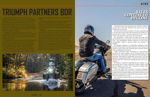 Australian motorcycle sales have seen a decline of almost two percent in the past calendar year , down to just over 94,000 units for the year .