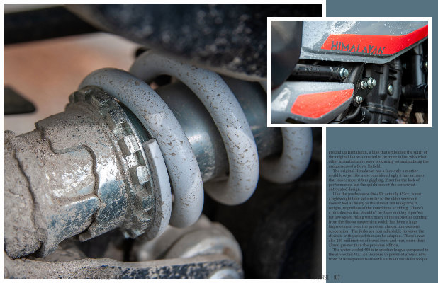 Like the predecessor the 450 , actually 452cc , is not a lightweight bike yet similar to the older version it doesn ’ t feel as heavy as the almost 200 kilograms it weighs , regardless of the conditions or riding . There ’ s a nimbleness that shouldn ’ t be there making it perfect for low-speed riding with many of the subtleties coming from the Showa suspension which has been a huge improvement over the previous almost non-existent suspension . The forks are non-adjustable however the shock is with preload that can be adapted . There ’ s now also 200 millimetres of travel front and rear , more than 25mm greater than the previous edition .