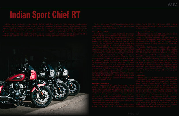 Purpose-Built Performance At the heart of the Sport Chief RT is Indian Motorcycle ’ s