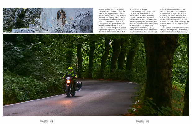 It was at this point that in 1950 the river was dammed with the construction of a wall necessary to produce electricity . With the construction of the dam , which still serves a power plant just below , the river has become a lake , submerging an ancient mill and a medieval bridge under its waters . A story similar to the one we will encounter only twenty kilometres later in Vagli di Sotto , where the waters of the artificial lake have instead hidden the medieval village of Fabbriche di Careggine , a submerged village that every time maintenance work on the reservoir requires it , the last time was in 1994 , resurfaces from the bottom of the lake like a ghost from the past .