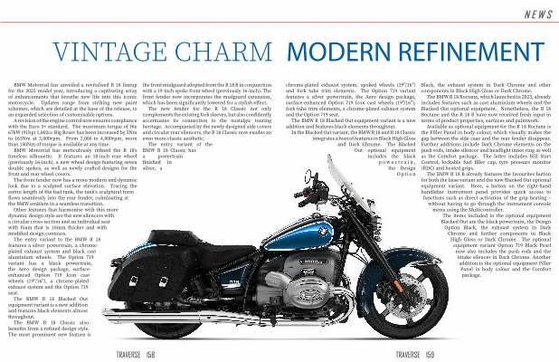 The BMW R 18 Blacked Out equipment variant is a new addition and features black elements throughout .