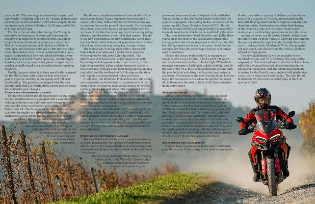 Like all Multistradas , the new V2 is also designed to allow Ducatisti to travel with maximum peace of mind thanks to benchmark maintenance intervals ( valve clearance check set every 30,000 km ) and the 4EVER Ducati and Roadside Assistance programs . The first offers a warranty valid for 4 years with unlimited mileage *. The Roadside Assistance * program adds roadside assistance , transportation for the rider and passenger , a replacement vehicle and overnight stays in a four-star hotel in the event of problems that may arise during the period of coverage . All this with the peace of mind offered by a network of over 800 official Ducati dealers in over 90 countries around the world .