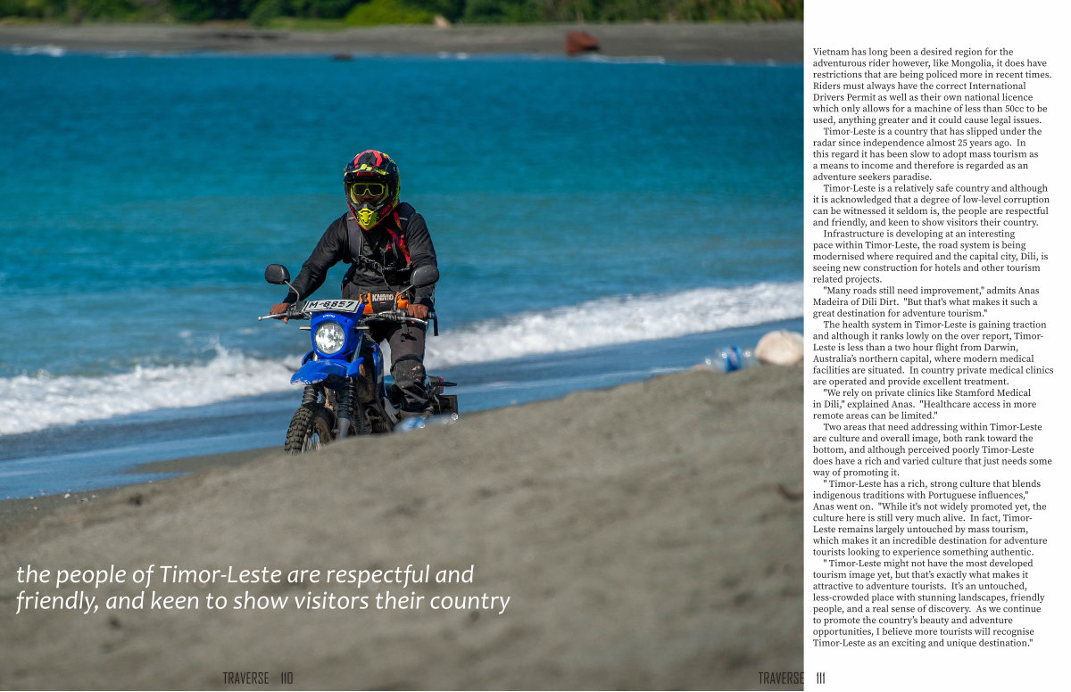 " Many roads still need improvement," admits Anas Madeira of Dili Dirt. " But that ' s what makes it such a great destination for adventure tourism."