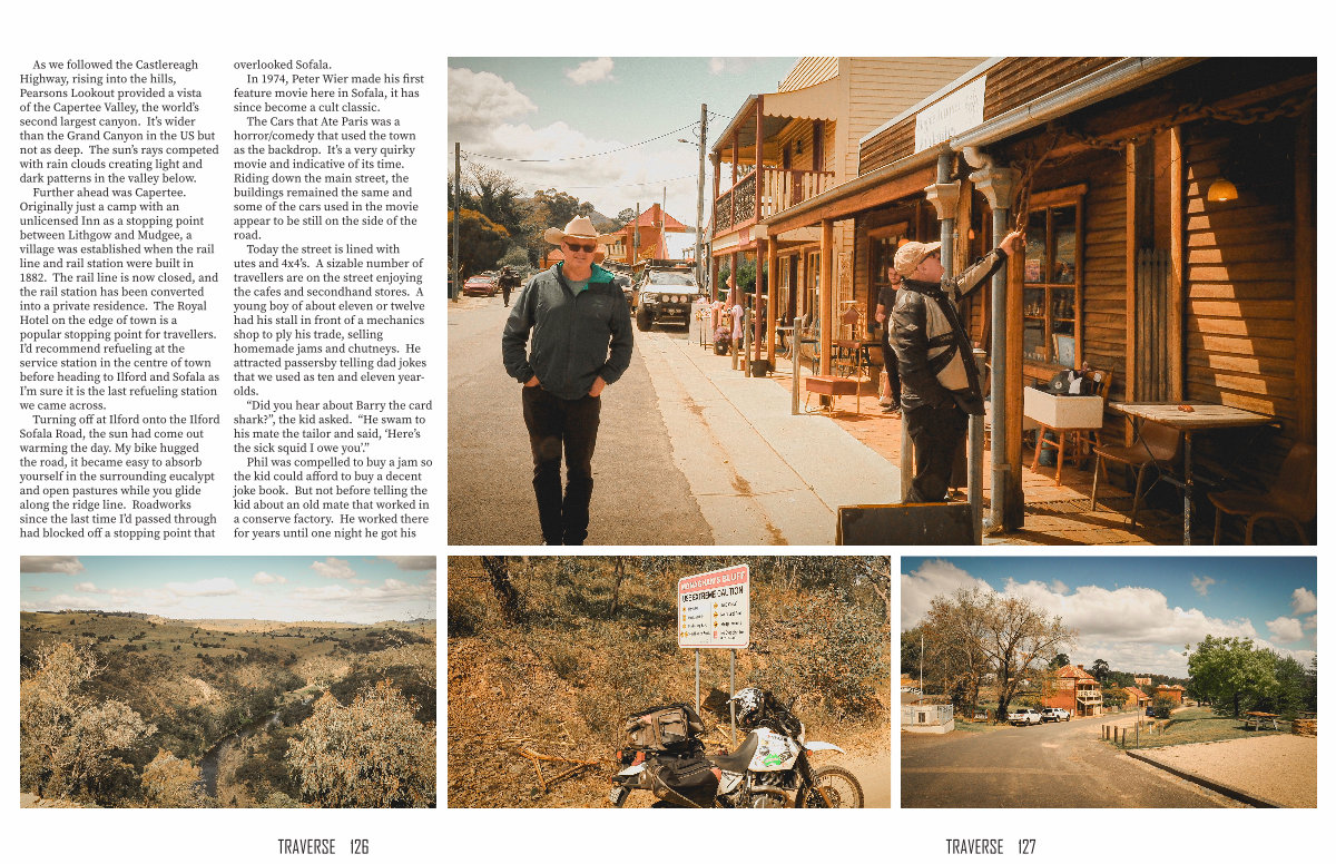 Turning off at Ilford onto the Ilford Sofala Road, the sun had come out warming the day. My bike hugged the road, it became easy to absorb yourself in the surrounding eucalypt and open pastures while you glide along the ridge line. Roadworks since the last time I’ d passed through had blocked off a stopping point that overlooked Sofala.