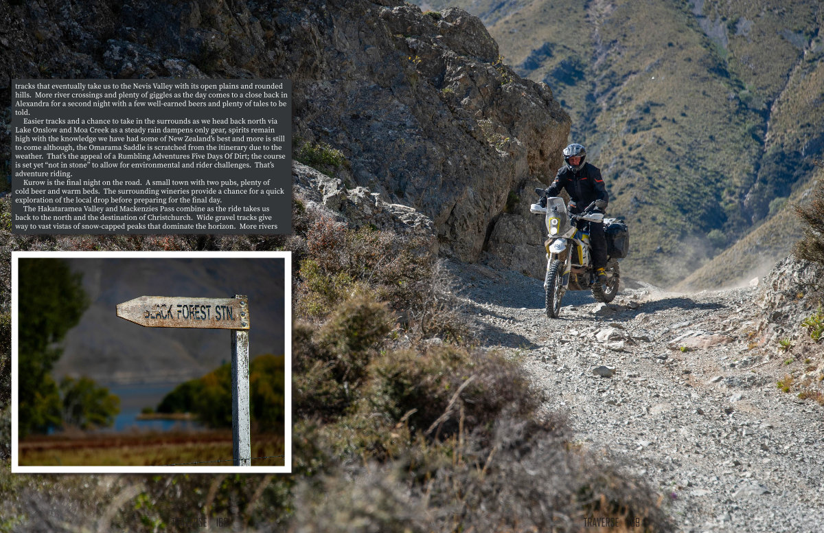 Easier tracks and a chance to take in the surrounds as we head back north via Lake Onslow and Moa Creek as a steady rain dampens only gear, spirits remain high with the knowledge we have had some of New Zealand’ s best and more is still to come although, the Omarama Saddle is scratched from the itinerary due to the weather. That’ s the appeal of a Rumbling Adventures Five Days Of Dirt; the course is set yet“ not in stone” to allow for environmental and rider challenges. That’ s adventure riding.
