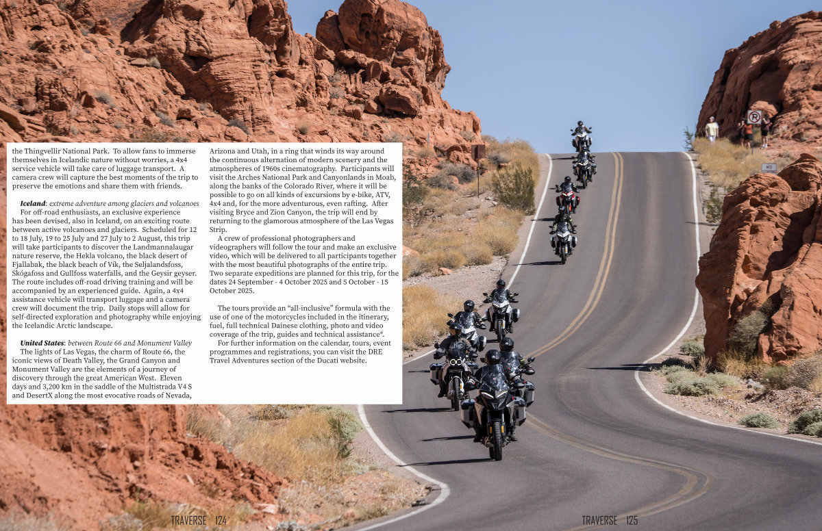 For further information on the calendar, tours, event programmes and registrations, you can visit the DRE Travel Adventures section of the Ducati website.