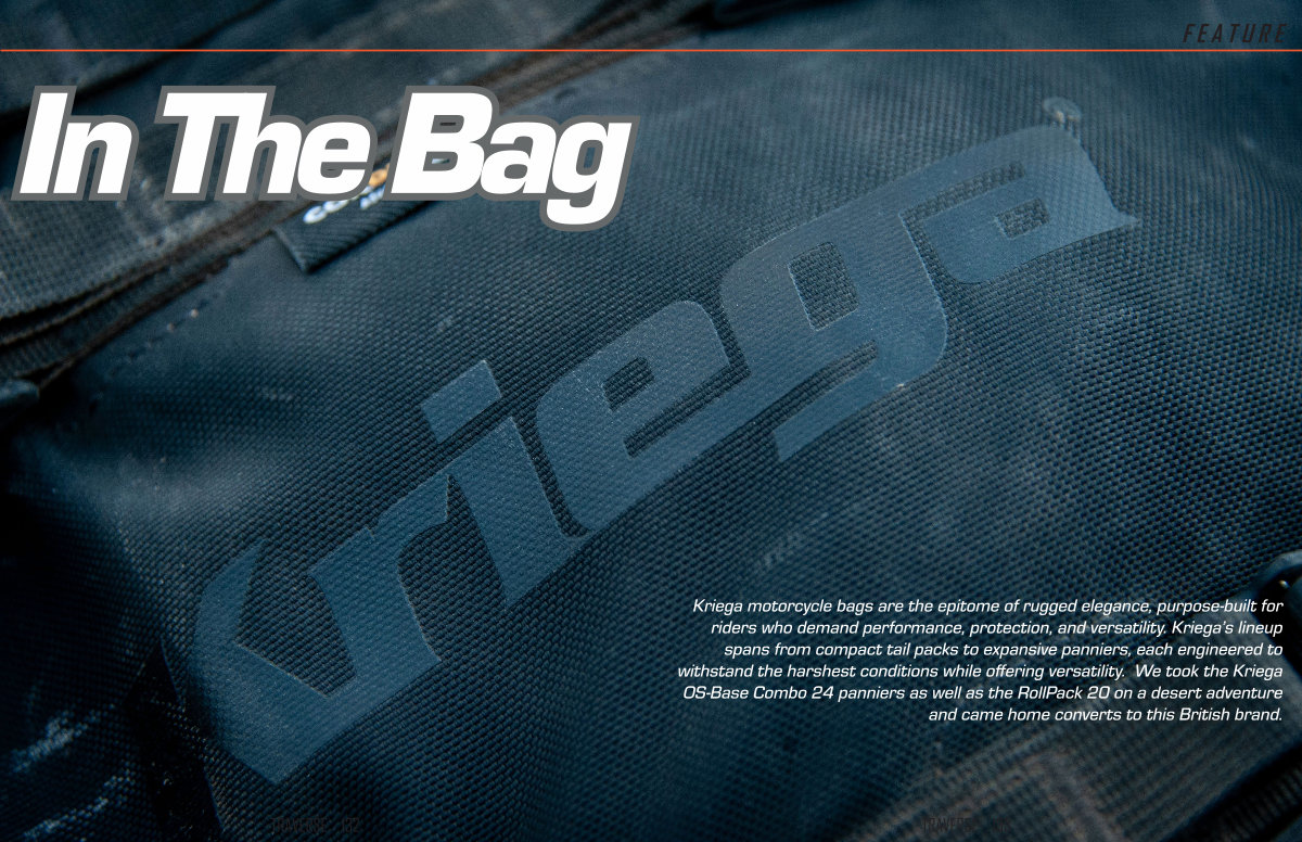 Kriega motorcycle bags are the epitome of rugged elegance, purpose-built for riders who demand performance, protection, and versatility. Kriega’ s lineup spans from compact tail packs to expansive panniers, each engineered to withstand the harshest conditions while offering versatility. We took the Kriega OS-Base Combo 24 panniers as well as the RollPack 20 on a desert adventure and came home converts to this British brand.