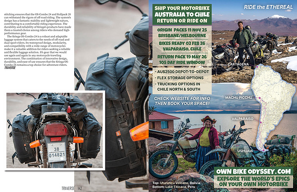 The Kriega OS-Combo 24 is a robust and adaptable luggage system that caters to the needs of off-road and dual-sport riders. Its waterproof design, modularity, and compatibility with a wide range of motorcycles make it a valuable addition for riders seeking a reliable and flexible luggage solution. It’ s gear that we would use again and again in any motorcycle traveling environment. The combination of innovative design, durability, and ease of use ensures that the Kriega OS- Combo 24 remains a top choice for adventure riders.