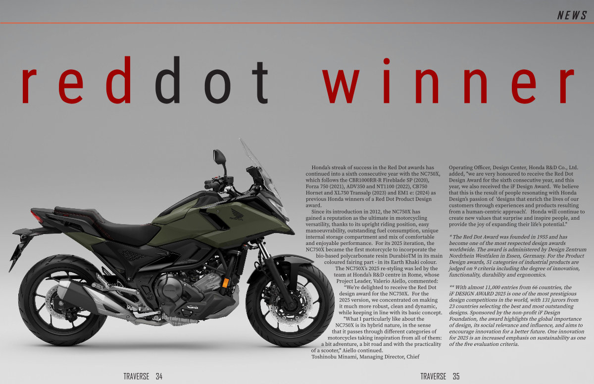 “ We’ re delighted to receive the Red Dot design award for the NC750X. For the 2025 version, we concentrated on making it much more robust, clean and dynamic, while keeping in line with its basic concept.