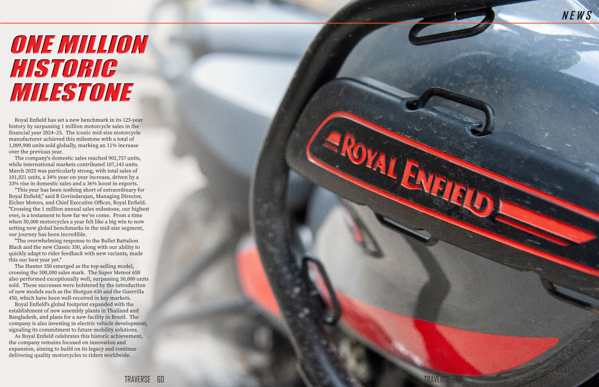 “ This year has been nothing short of extraordinary for Royal Enfield," said B Govindarajan, Managing Director, Eicher Motors, and Chief Executive Officer, Royal Enfield. " Crossing the 1 million annual sales milestone, our highest ever, is a testament to how far we’ ve come. From a time when 50,000 motorcycles a year felt like a big win to now setting new global benchmarks in the mid-size segment, our journey has been incredible.