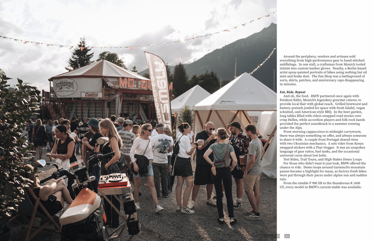 From morning cappuccinos to midnight currywurst, there was always something on offer, and always someone to share it with. A couple from Portugal shared wine with two Ukrainian mechanics. A solo rider from Kenya swapped stickers with a Thai vlogger. It was an unspoken language of gear ratios, fuel tanks, and the occasional universal curse about lost bolts. Test Rides, Trail Tours, and High-Stakes Demo Loops For those who didn’ t want to just look, BMW offered the chance to ride. Demo loops around Garmisch’ s mountain passes became a highlight for many, as factory-fresh bikes were put through their paces under alpine sun and sudden rain.