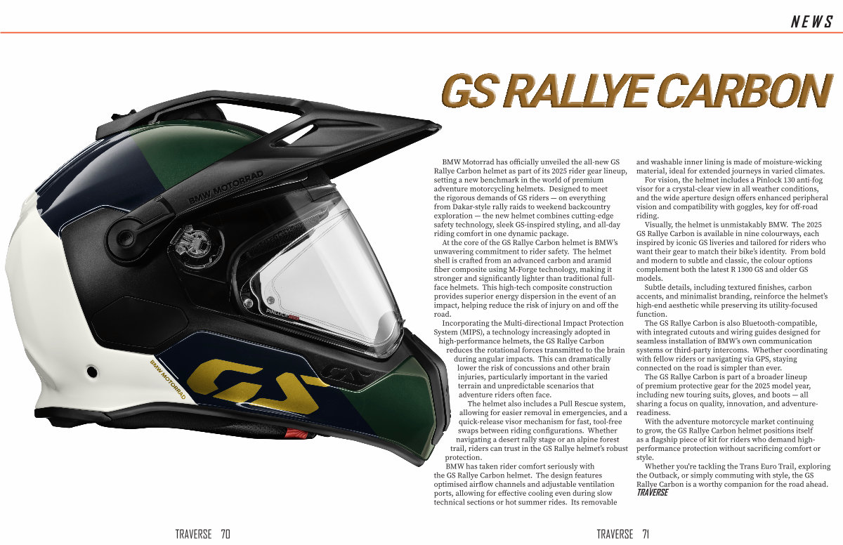 With the adventure motorcycle market continuing to grow, the GS Rallye Carbon helmet positions itself as a flagship piece of kit for riders who demand highperformance protection without sacrificing comfort or style.