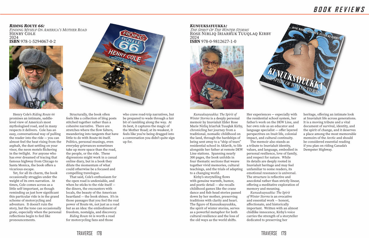 heritage, offering an intimate look at Inuvialuit life across generations. It is a moving tribute and a vital document of survival, identity, and the spirit of change, and it deserves a place among the most memorable memoirs of the Arctic and should be considered essential reading if you plan on riding Canada ' s Dempster Highway.