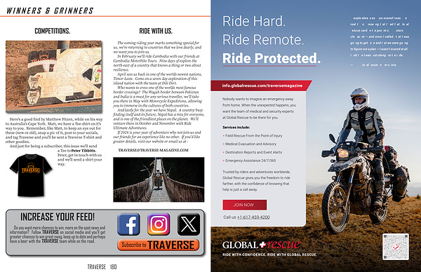 Do you want more chances to win, more on the spot news and information? Follow TRAVERSE on social media and you ' ll get greater chances to win great swag, keep up to date and perhaps have a beer with the TRAVERSE team while on the road.