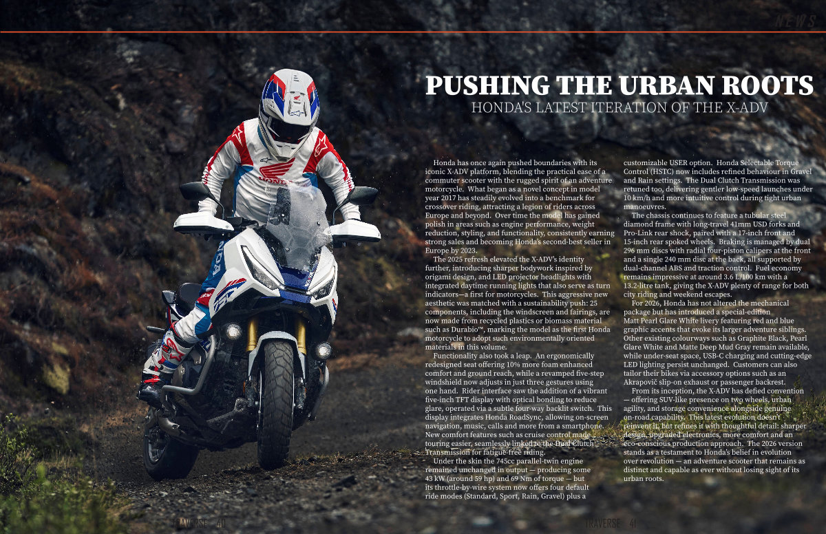 From its inception, the X‐ADV has defied convention— offering SUV‐like presence on two wheels, urban agility, and storage convenience alongside genuine on‐road capability. This latest evolution doesn’ t reinvent it, but refines it with thoughtful detail: sharper design, upgraded electronics, more comfort and an eco‐conscious production approach. The 2026 version stands as a testament to Honda’ s belief in evolution over revolution— an adventure scooter that remains as distinct and capable as ever without losing sight of its urban roots.