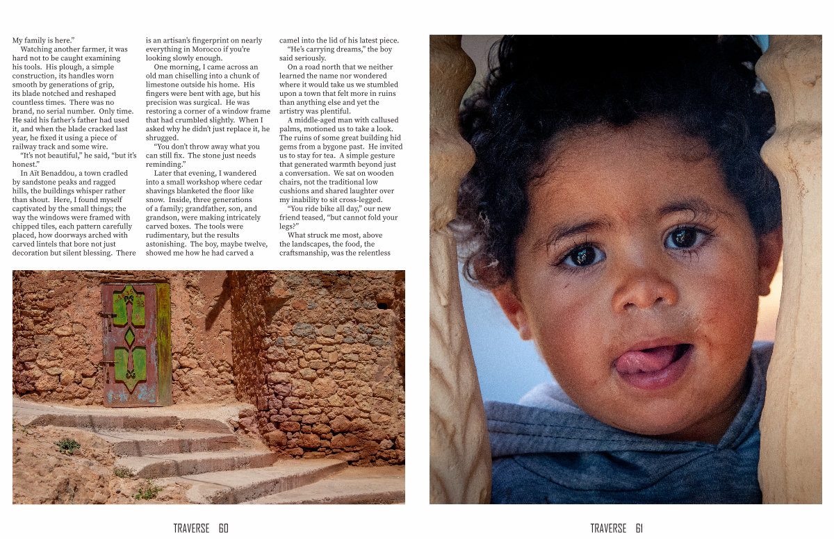 In Aït Benaddou, a town cradled by sandstone peaks and ragged hills, the buildings whisper rather than shout. Here, I found myself captivated by the small things; the way the windows were framed with chipped tiles, each pattern carefully placed, how doorways arched with carved lintels that bore not just decoration but silent blessing. There is an artisan’ s fingerprint on nearly everything in Morocco if you’ re looking slowly enough.