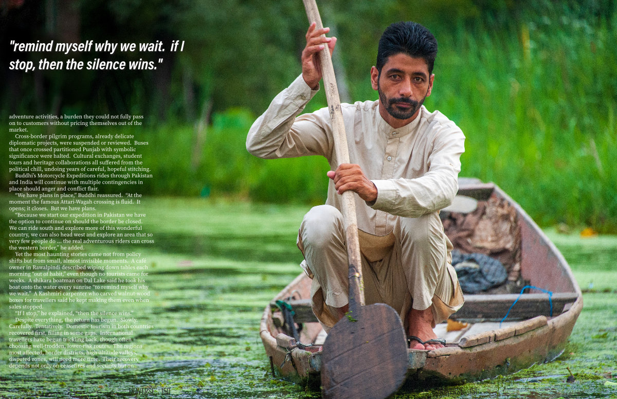 Yet the most haunting stories came not from policy shifts but from small, almost invisible moments. A café owner in Rawalpindi described wiping down tables each morning“ out of habit,” even though no tourists came for weeks. A shikara boatman on Dal Lake said he took his boat onto the water every sunrise“ to remind myself why we wait.” A Kashmiri carpenter who carved walnut-wood boxes for travellers said he kept making them even when sales stopped.“ If I stop,” he explained,“ then the silence wins.” Despite everything, the return has begun. Slowly. Carefully. Tentatively. Domestic tourism in both countries recovered first, filling in some gaps. International travellers have begun trickling back, though often choosing well-trodden, lower-risk routes. The regions most affected, border districts, high-altitude valleys, disputed zones, will need more time. Their recovery depends not only on ceasefires and security but on