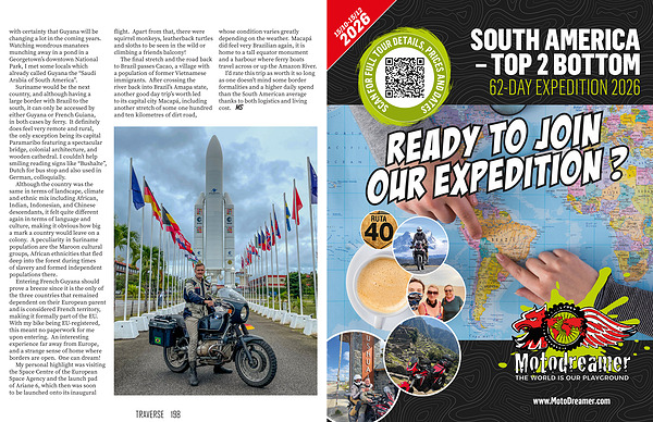 Entering French Guyana should prove a breeze since it is the only of the three countries that remained dependent on their European parent and is considered French territory, making it formally part of the EU. With my bike being EU-registered, this meant no paperwork for me upon entering. An interesting experience far away from Europe, and a strange sense of home where borders are open. One can dream!