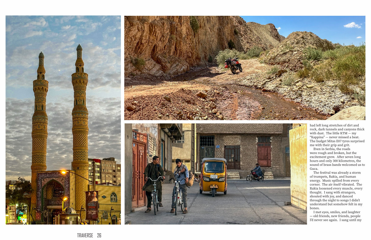 had left long stretches of dirt and rock, dark tunnels and canyons thick with dust. The little KTM— my“ Kappina”— never missed a beat. The budget Mitas E07 tyres surprised me with their grip and grit.