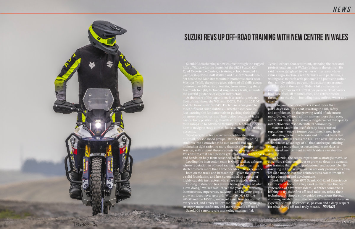 Looking ahead, the SR75 Suzuki Off-Road Experience Centre could become a key asset in nurturing the next generation of adventure riders. Whether someone is looking to try their first off-road mission, refine their technique, or simply enjoy guided excursions through stunning Welsh terrain, the centre promises to deliver an experience built on expertise, passion and a deep respect for what riding off-road truly means. TRAVERSE