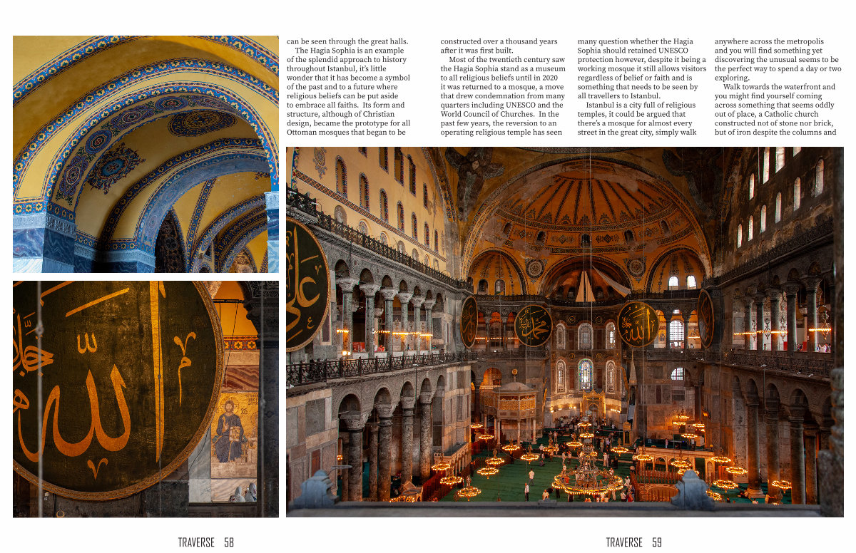 The Hagia Sophia is an example of the splendid approach to history throughout Istanbul, it’ s little wonder that it has become a symbol of the past and to a future where religious beliefs can be put aside to embrace all faiths. Its form and structure, although of Christian design, became the prototype for all Ottoman mosques that began to be