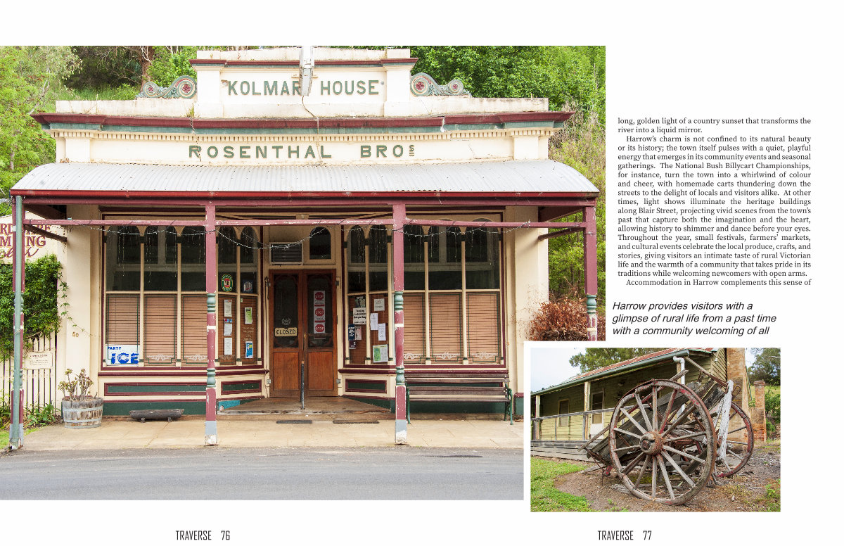 Harrow’ s charm is not confined to its natural beauty or its history; the town itself pulses with a quiet, playful energy that emerges in its community events and seasonal gatherings. The National Bush Billycart Championships, for instance, turn the town into a whirlwind of colour and cheer, with homemade carts thundering down the streets to the delight of locals and visitors alike. At other times, light shows illuminate the heritage buildings along Blair Street, projecting vivid scenes from the town’ s past that capture both the imagination and the heart, allowing history to shimmer and dance before your eyes. Throughout the year, small festivals, farmers’ markets, and cultural events celebrate the local produce, crafts, and stories, giving visitors an intimate taste of rural Victorian life and the warmth of a community that takes pride in its traditions while welcoming newcomers with open arms.