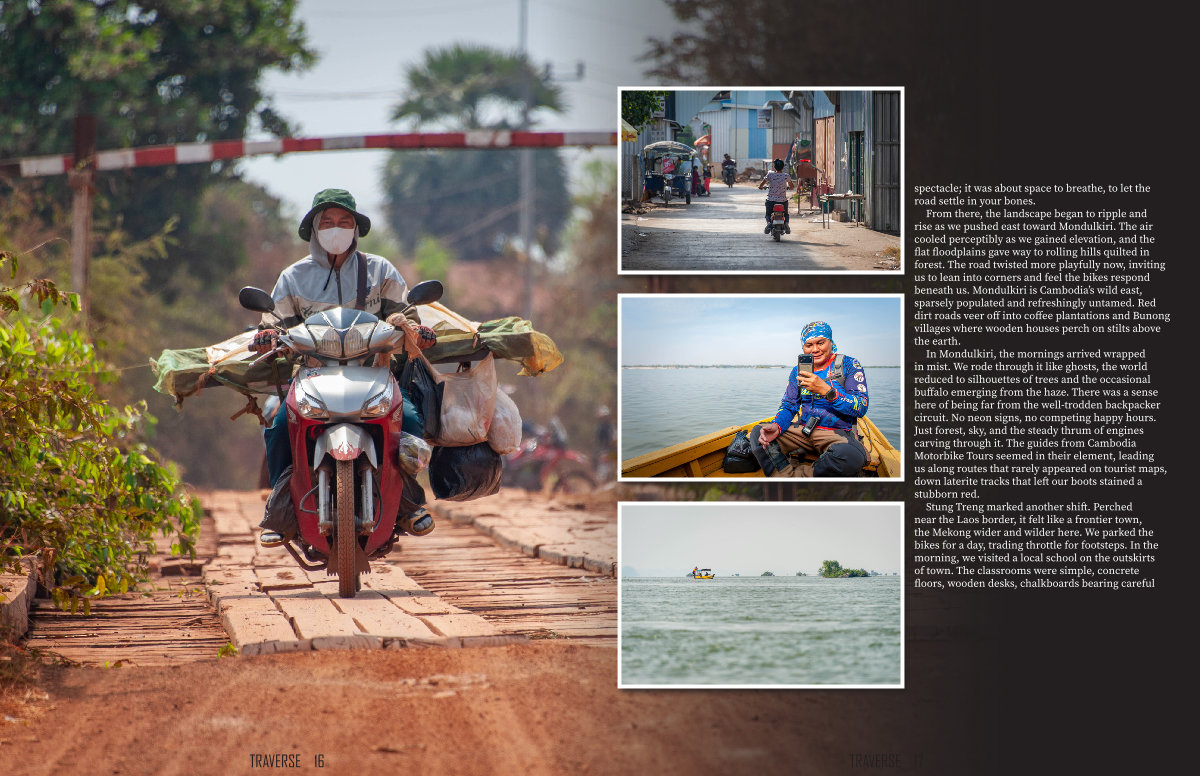 In Mondulkiri, the mornings arrived wrapped in mist. We rode through it like ghosts, the world reduced to silhouettes of trees and the occasional buffalo emerging from the haze. There was a sense here of being far from the well-trodden backpacker circuit. No neon signs, no competing happy hours. Just forest, sky, and the steady thrum of engines carving through it. The guides from Cambodia Motorbike Tours seemed in their element, leading us along routes that rarely appeared on tourist maps, down laterite tracks that left our boots stained a stubborn red.
