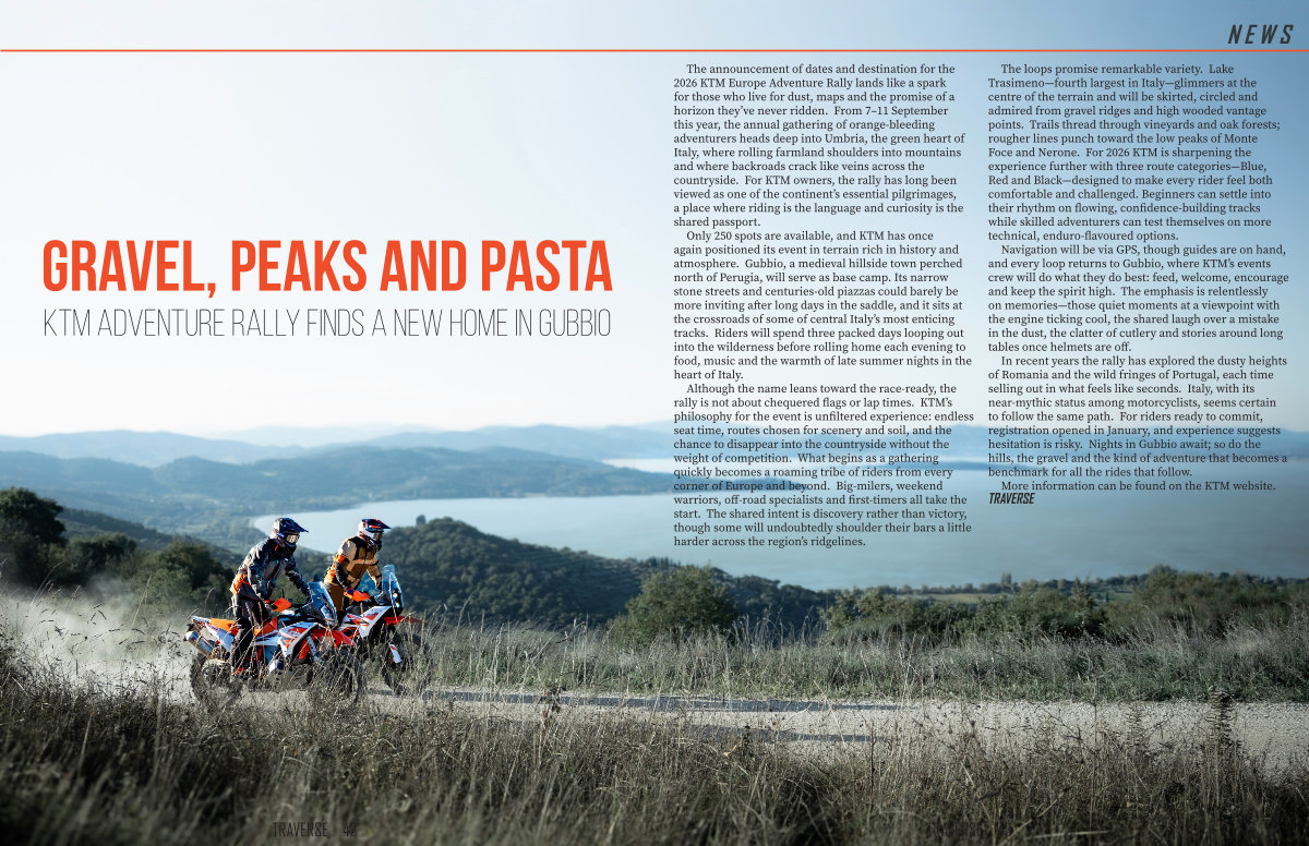 The announcement of dates and destination for the 2026 KTM Europe Adventure Rally lands like a spark for those who live for dust, maps and the promise of a horizon they’ ve never ridden. From 7 – 11 September this year, the annual gathering of orange-bleeding adventurers heads deep into Umbria, the green heart of Italy, where rolling farmland shoulders into mountains and where backroads crack like veins across the countryside. For KTM owners, the rally has long been viewed as one of the continent’ s essential pilgrimages, a place where riding is the language and curiosity is the shared passport.