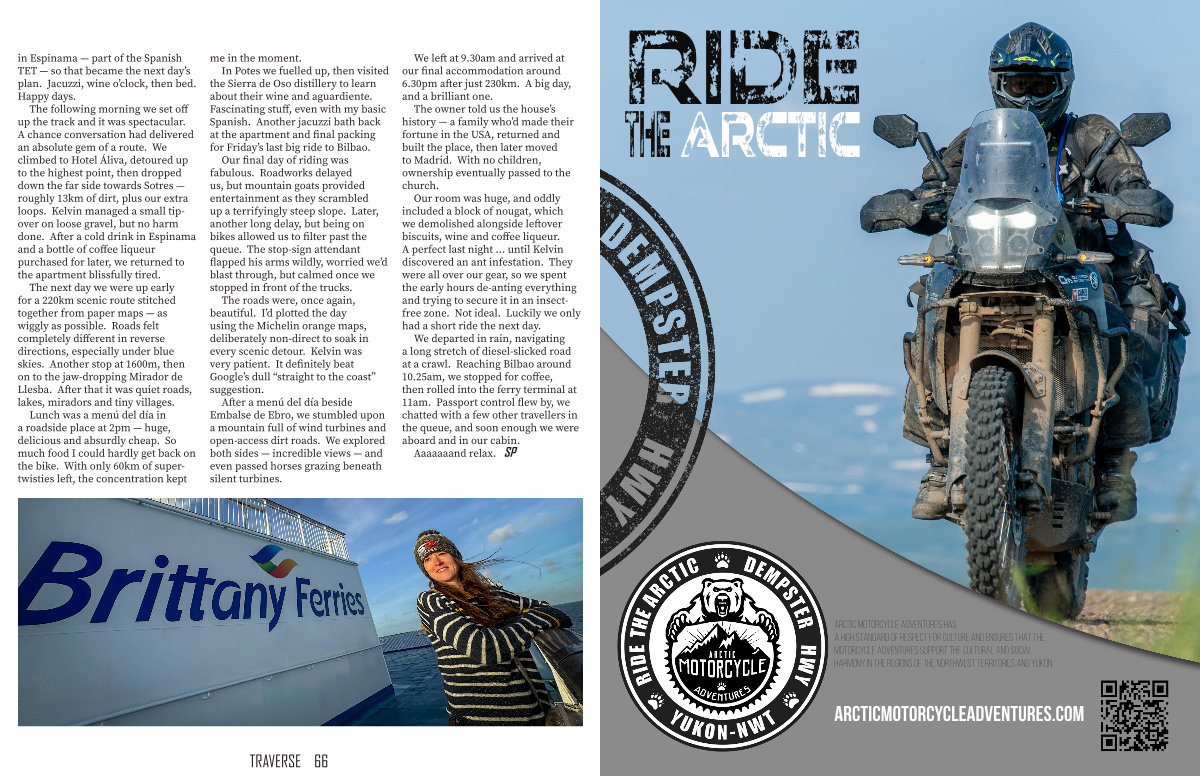 Our final day of riding was fabulous. Roadworks delayed us, but mountain goats provided entertainment as they scrambled up a terrifyingly steep slope. Later, another long delay, but being on bikes allowed us to filter past the queue. The stop-sign attendant flapped his arms wildly, worried we’ d blast through, but calmed once we stopped in front of the trucks.