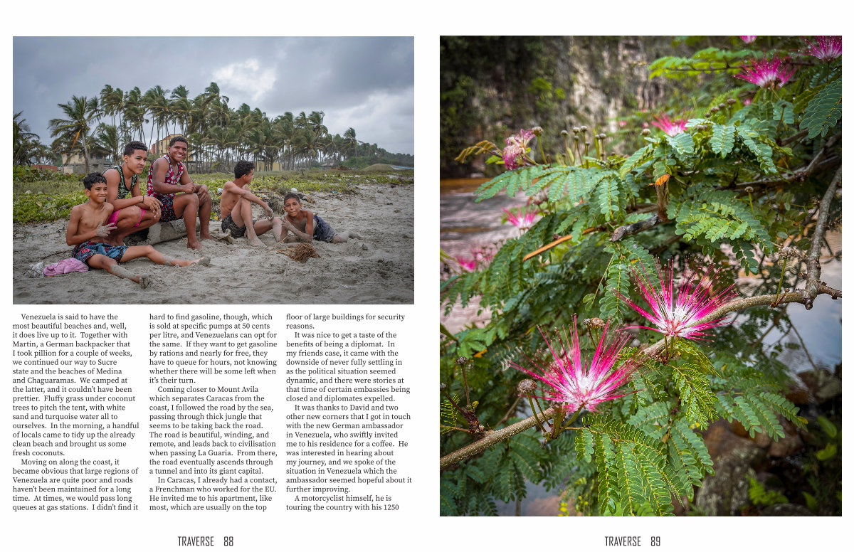 Venezuela is said to have the most beautiful beaches and, well, it does live up to it. Together with Martin, a German backpacker that I took pillion for a couple of weeks, we continued our way to Sucre state and the beaches of Medina and Chaguaramas. We camped at the latter, and it couldn’ t have been prettier. Fluffy grass under coconut trees to pitch the tent, with white sand and turquoise water all to ourselves. In the morning, a handful of locals came to tidy up the already clean beach and brought us some fresh coconuts.