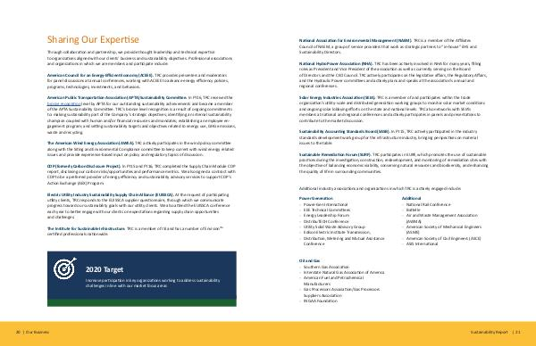 Electric Utility Industry Sustainability Supply Chain Alliance( EUISSCA). At the request of participating utility clients, TRC responds to the EUISSCA supplier questionnaire, through which we communicate progress toward our sustainability goals with our utility clients. We also attend the EUISSCA conference each year to better engage with our clients on expectations regarding supply chain opportunities and challenges.