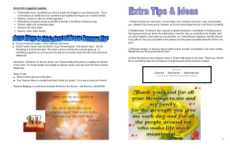 Remember: Whatever it is that you desire, your Treasure Map will assist you in getting the desires of your heart. As we get specific and enlarge on what we desire, we’ ll see more and more miracles happening.