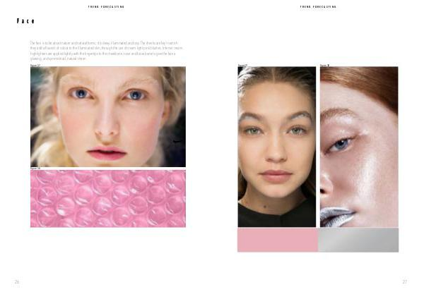 The face is to be about nature and natural forms; it is dewy, illuminated and rosy. The cheeks are key in which