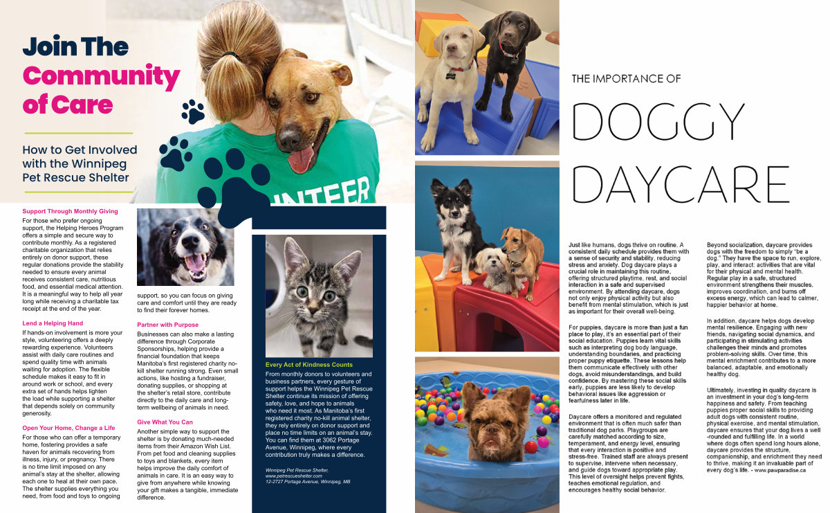 Businesses can also make a lasting difference through Corporate Sponsorships, helping provide a financial foundation that keeps Manitoba’ s first registered charity nokill shelter running strong. Even small actions, like hosting a fundraiser, donating supplies, or shopping at the shelter’ s retail store, contribute directly to the daily care and longterm wellbeing of animals in need.