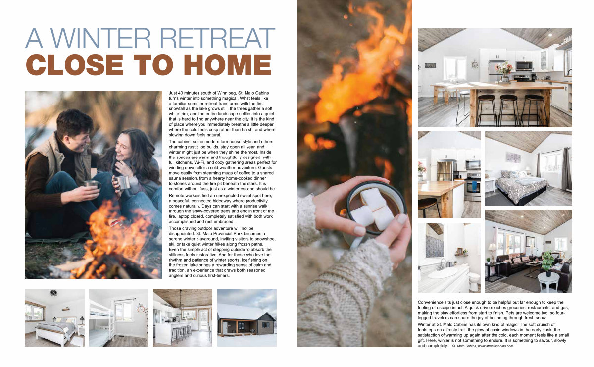 Winter at St. Malo Cabins has its own kind of magic. The soft crunch of footsteps on a frosty trail, the glow of cabin windows in the early dusk, the satisfaction of warming up again after the cold, each moment feels like a small gift. Here, winter is not something to endure. It is something to savour, slowly and completely.- St. Malo Cabins, www. stmalocabins. com
