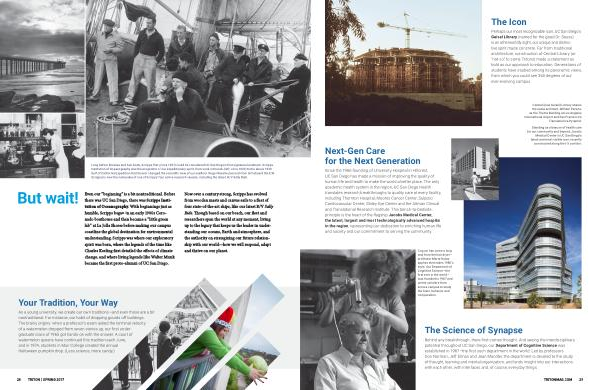 Even our “ beginning ” is a bit nontraditional . Before there was UC San Diego , there was Scripps Institution of Oceanography . With beginnings just as humble , Scripps began in an early 1900s Coronado boathouse and then became a “ little green lab ” at La Jolla Shores before making our campus coastline the global destination for environmental understanding . Scripps was where our exploratory spirit was born , where the legends of the time like Charles Keeling first detailed the effects of climate change , and where living legends like Walter Munk became the first proto-alumni of UC San Diego .